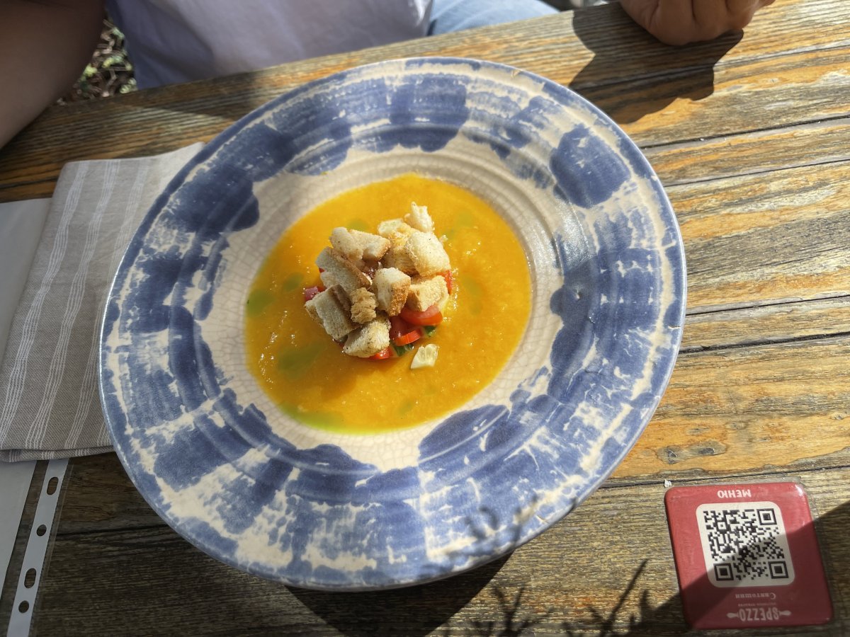 Непогано, але дуже посередні блюда. Замовляли тартар з яловичини, з першого погляду взагалі складно було зрозуміти походження цього блюда, але і на смак так собі. ... Mehr Непогано, але дуже посередні блюда. Замовляли тартар з яловичини, з першого погляду взагалі складно було зрозуміти походження цього блюда, але і на смак так собі. В супі Гаспачо не вистачило пікантності. Чізкейк був непоганий.